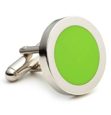 Green Dot Rhodium Silver Enamel Mens Cufflinks Cuff Links