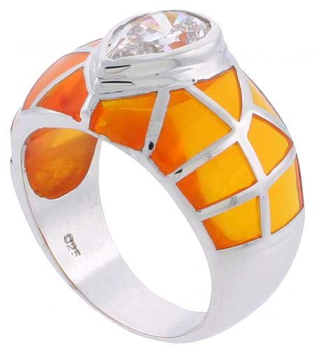 BEST DISCOUNT Sterling Silver Golden Yellow Resin Ring with Pear Cut Cubic Zirconia Stones size 8
